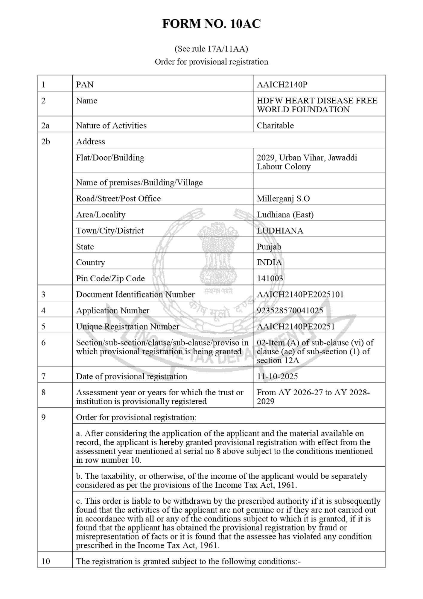 | Section 80G Registration | AAICH2140PF20251 |